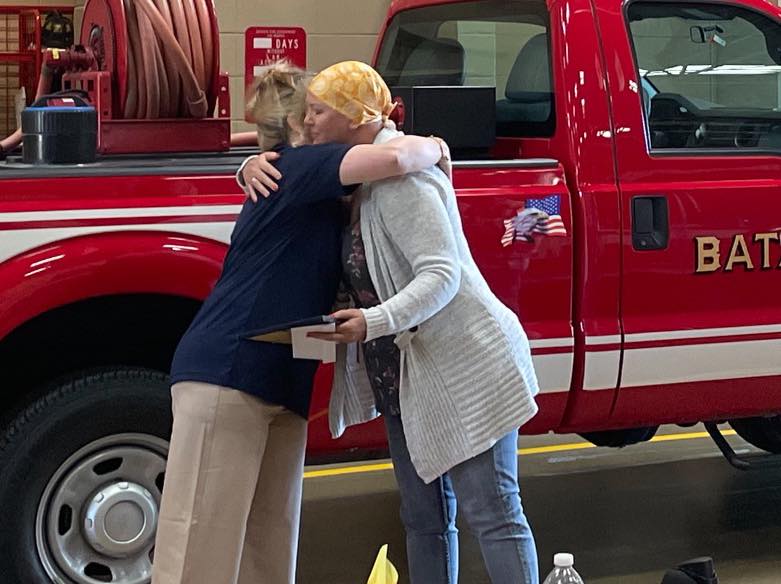 It was our privilege to present the first Gifting on Sunday to the amazing FF/PM Dawn Trizna and her family (including the 4-footed members.) The Batavia Fire Department provided a gracious welcome. We send warmest wishes of strength and encouragement in your battle against cancer.