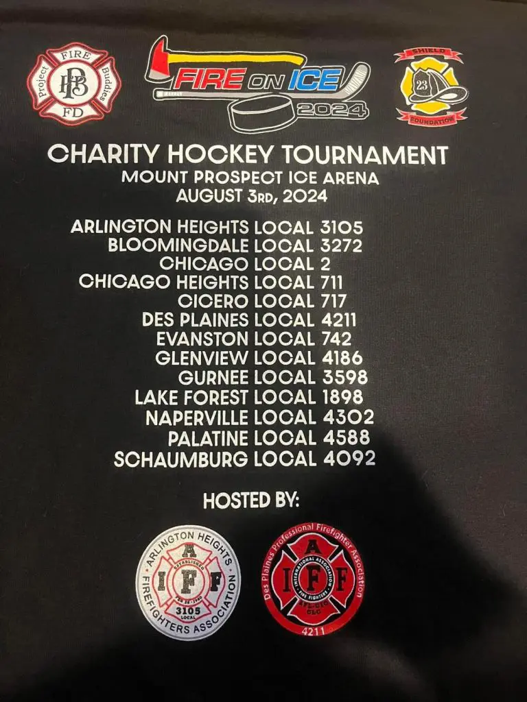 A huge thank you to Des Plaines Professional Firefighters Association IAFF Local 4211 and Arlington Heights Firefighters L-3105 for hosting their first annual Fire on Ice hockey tournament.
