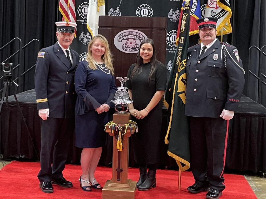Shenan & Treasurer John (retired BC with Gurnee Firefighters) attended the Induction Ceremony & Dinner where heart warming meet ups took place with Gifting Recipient & HG Member Bob Arens of Chicago Fire Department Firefighters Union – Local 2 and Christina, wife of the late Gifting Recipient FF/PM Frank Nunez of Itasca FD, who was memorialized this year along with 5 others, including the late Gifting Recipient FF/PM Andy Cutting of the Skokie Fire Department Firefighter’s Local 3033.